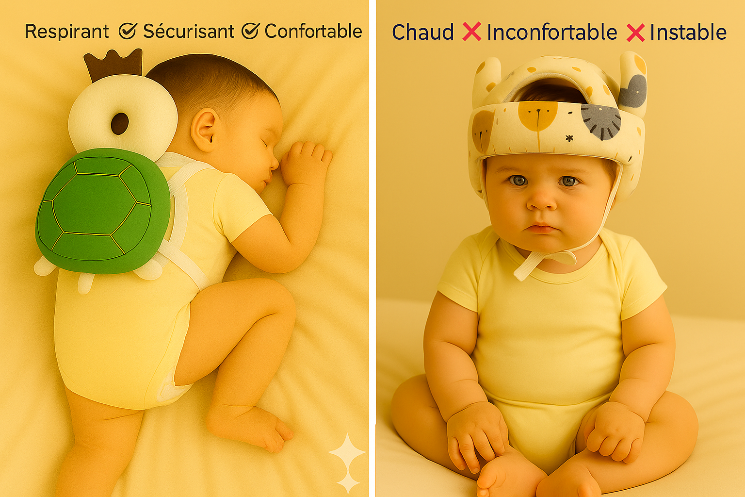 Contrairement aux coussins classiques, le coussin de protection pour bébé protÚge le bébé tout en devenant son compagnon préféré pour explorer, jouer et apprendre en toute sécurité